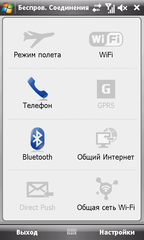 Управление модулями Wi-Fi и Bluetooth в P835 осуществляется операционной системой. Весьма распространенный среди производителей коммуникаторов вариант. Надежный, но не отличающийся «дружелюбностью» к пользователю.