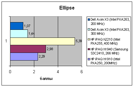 Видеоподсистема у Axim X3, как видим, не быстрая. Тесты с «чистым» выводом на информации экран показывают большое преимущество КПК iPAQ с мощной видеосистемой, тогда как в «процессорозависимых» тестах с масштабированием изображения положение несколько выравнивается, хотя X3 все еще отстает.