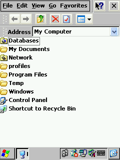 Возвращаясь к нашему КПК, хочу сказать, что Эксплорер этот — самый продвинутый из всех, что я видел в аналогичных устройствах. И по воплощению и по возможностям. В нем есть как графическое, так и текстовое меню. При желании путем простого перетаскивания вы можете расположить меню одно под другим или оформить их в виде закладочек, открывающихся в результате нажатия стилуса. Механизм примерно тот же, что и в программах Microsoft Office. В программе активно используются выпадающие меню; предусмотрена возможность удалять и копировать файлы, создавать ярлыки, просматривать свойства.