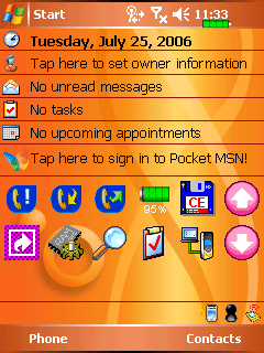 Первое, что бросается в глаза — панель с ярлыками приложений и настроек в нижней части экрана Today. Вынести и запускать с нее можно любое приложение по собственному усмотрению, в правой части находятся кнопки прокрутки списка ярлыков. Размеры кнопок и их расположение подогнаны для нажатия на них большим пальцем руки, держащей коммуникатор. Тем самым создается иллюзия большого числа аппаратных кнопок и значительно ускоряется вызов нужного приложения, просмотра пропущенных и непринятых вызовов и т.п. Сама утилита называется Quick Link.
