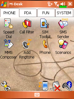 Приложение M-desk, за вызов которого отвечает одна из аппаратных клавиш на лицевой панели коммуникатора, представляет собой еще один сборник ярлыков приложений и настроек, собранных в нескольких оконных вкладках. Ничего нового, тот же функционал реализуется с помощью Quick Link.