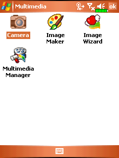 Все фирменные программы и утилиты собраны в меню Программы в папки: Multimedia, Phone, Utilities и Voice Commander. В папке Multimedia находятся апплет отвечающий за работу с камерой и работу с мультимедиа данными. Image maker – аналог приложения Paint из MS Windows. Image wizard — мастер обработки изображений и их сохранения/отправки. Никаких сложных функций он не выполняет. Multimedia manager — приложение для просмотра в виде иконок и слайд шоу различных фото и видеоматериалов.