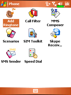 Каталог Phone собрал в себя многочисленные приложения, типичные для телефона. Это менеджер рингтонов, фильтр звонков, мастер создания MMS сообщений, профили работы коммуникатора, меню SIM-карты, управление Skype, SMS-мессенджер и уже знакомый Speed Dial. Установив Skype-клиент, можно общаться с собеседником используя гарнитуру или в обычном телефонном режиме, держа аппарат около уха. Качество соединения целиком и полностью зависит от «толщины» канала в Интернет. Если для доступа используется GPRS линия, пообщаться приемлемо не выйдет, если же точка Wi-Fi с доступом в сеть, то заметных отличий от обычного телефонного разговора нет.