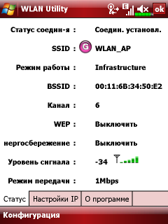 Радиомодуль Wi-Fi соответствует стандартам IEEE 802.11b/g. Управление и подключение к сетям осуществляется в настройках операционной системы. Дополнительная утилита обеспечивает мониторинг подключения и отображает полезную информацию.
