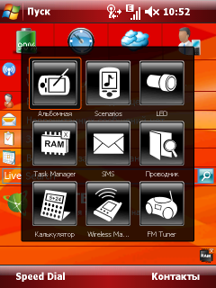 Все дополнительные утилиты в меню программ операционной системы разбиты по группам. Раздел Multimedia включает в себя ярлыки программ: Multimedia Manager — организация просмотра аудио, видео файлов и изображений в памяти коммуникатора, Namecard Manager — программа обработки информации с визитных карточек, FM Tuner и FM Transmitter — управление радиоприемником и радиопередатчиком соответственно.