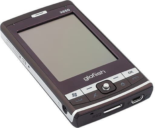 На выбор предоставляется два цветовых исполнения коммуникаторов. Присутствовавший на тестировании Glofiish X600 был полностью черным. Старшая модель — Х650 — темно-фиолетовая. Размещение элементов управления традиционное и удобное. Габариты устройств позволяют без особых проблем поместить один коммуникатор в кармане. Любителям демонстрировать свои приобретения пригодится отверстие для шнурка, расположенное в левом углу верхнего торца компьютера.
