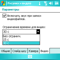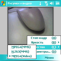 Видеозахват осуществляется в формате MPEG4(3GP) с максимальным разрешением 176х144. Ограничений по длине ролика нет, сохранять полученные клипы можно как во внутренней памяти коммуникатора, так и на сменной карте. Пример видеозаписи приведен здесь.