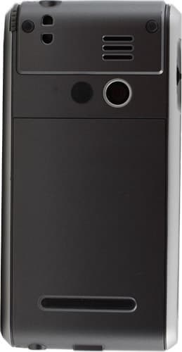 Задняя панель устройства используется под аккумуляторный отсек, крышка которого занимает основную площадь панели. Ближе к верхнему торцу устройства находятся объектив фотокамеры, гнездо для внешней антенны (закрыто крышкой), динамик коммуникатора и отверстие для шнурка. По периметру панели расположены три прорезиненных выступа, благодаря которым устройство легко удерживается в неподвижном состоянии на наклонной поверхности. В левом верхнем углу расположен разъем для стилуса. Перо узкое и длинное, овальное в поперечнике, очень легкое. При небольших размерах экрана и широком конце стилуса порой бывает затруднительно попасть, например, в небольшую ссылку в браузере. Кнопка перезагрузки компьютера спрятана внутри аккумуляторного отсека. Добраться до нее в случае необходимости можно только сняв крышку. Аналогичный результат достигается простым отключением аккумулятора.