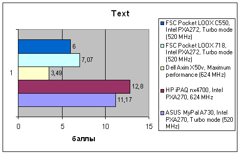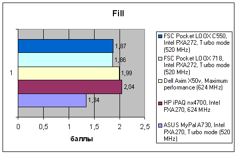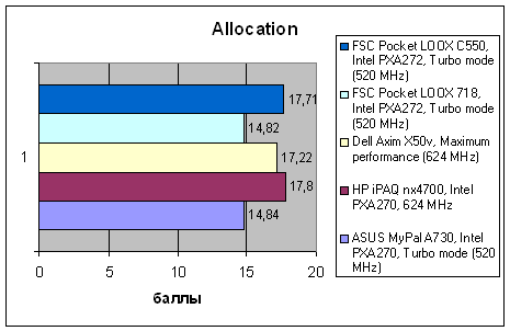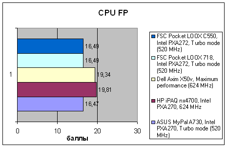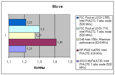 Как и предыдущие модели FSC, на базе которых он построен, C550 не слишком быстр. Он обладает достаточной для нормальной работы производительностью, но уступает не только лидеру HP iPAQ hx4700, но и VGA-КПК ASUS. Практически во всех тестах новинка ведет себя очень похоже на базовую модель, за исключением того, что итоговая производительность ее немного ниже за счет того, что в WM 5.0 другая модель работы с памятью, и ряд данных располагается не в быстрой оперативной памяти, а в более медленной флэш.