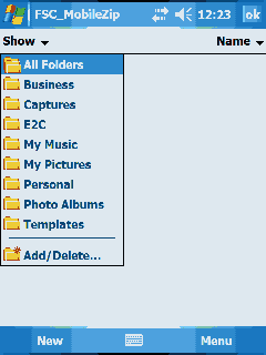 FSC MobileZIP. Программа для работы с архивами. Поддерживается только ZIP, с архивами RAR работать с ее помощью нельзя.