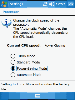 Processor Settings. Стандартный для ASUS/Fujitsu Siemens апплет для управления тактовой частотой процессора. На выбор доступны три градации производительности и автоматический режим, который выбирает нужную частоту, исходя из ресурсоемкости запущенных приложений, а также остатка заряда батареи.
