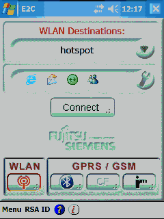 Connectmobility-E2C. Фирменный апплет Fujitsu Siemens для управления Интернет-соединениями. Из его оболочки можно выбрать носитель Интернет-соединения, а также указать соответствующие опции. К Интернету можно подключиться через Wi-Fi (кнопка WLAN) или же GSM-терминал, который, в свою очередь, может быть связан с КПК через Bluetooth или IrDA. Очевидно, что программа без изменений перекочевала с модели LOOX 720/718, так как в ней присутствует опция работы с CF-адаптером GSM, тогда как сам слот CF в С550 отсутствует.