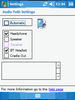 FSC AudioPath. Апплет для направления выходного потока аудиоданных на периферийное устройство. Используется в первую очередь для того, чтобы можно было выводить звук на Bluetooth-гарнитуру, как в коммуникаторах в С550 ОС не имеет пакета дополнительного оснащения Phone Edition, и потому вывода звука на гарнитуру в ней по умолчанию нет. Основное назначение программы заключается в облегчении использования КПК в роли IP-телефона в сетях Wi-Fi путем использования Bluetooth-гарнитуры. Параллельно можно разрешать или запрещать выводить звук на встроенный динамик, гнездо наушников в устройстве или крэдле.