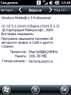 - Операционная система Microsoft Windows Mobile 6.5.3 Professional;