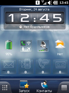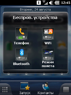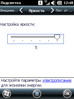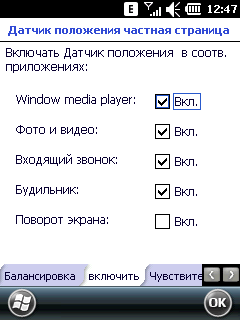 Яркость подсветки и углы обзора экрана достаточны в большинстве случаев, когда нужно воспользоваться устройством. Конечно, картинка на дисплее становится слаборазличимой на ярком солнце, а при острых углах обзора начинает плыть и переливаться неестественными цветами. В общем, все прелести и недостатки традиционных TFT-матриц с резистивной сенсорной панелью. Уровней яркости подсветки немного — пять, разница между ними небольшая. Полностью подсветка не отключается. Коммуникатор оснащен гравитационным датчиком, в настройках системы можно включить постоянный режим смены ориентации дисплея в зависимости от положения устройства в пространстве. По умолчанию эта возможность присутствует только в нескольких приложениях, для всей системы её нужно включать вручную.