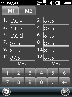 Программа управления радиоприемником показалась излишне запутанной: слишком перегружен интерфейс. Доступны двенадцать ячеек для радиостанций, поиск может вестись автоматически или вручную. Качество приема среднее, как и в большинстве коммуникаторов.