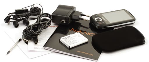 Содержимое коробки состоит из: коммуникатора, аккумулятора, проводной стереогарнитуры, USB-кабеля, зарядного устройства, запасного пера, чехла, документации и диска с программным обеспечением. В целом, хорошая комплектация для столь недорогого устройства.