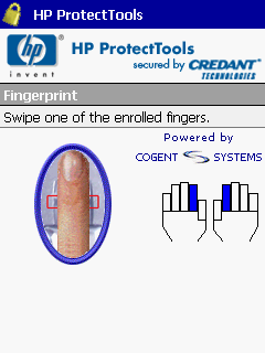 При снятии защиты (например, после включения КПК) система выдаст запрос, по которому нужно провести над сканером одним из определенных при ее настройке пальцев. Для распознавания обычно достаточно четкого изображения относительно большой части подушечки, не обязательно даже, чтобы оно включало центральную ее часть. В итоге систему биометрической защиты hx2750 можно считать простой и удобной в применении.