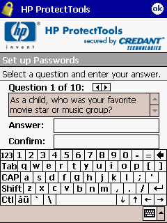 Система безопасности HP ProtectTools позволяет защищать доступ к КПК и формировать в его памяти папки с шифрованным содержимым. Для этого применяется идентификация пользователя по отпечатку пальца, простому четырехзначному PIN-коду, пользовательскому или усложненному (strong) алфавитно-цифровому паролю. Допускается одновременное или альтернативное использование двух видов защиты из числа вышеперечисленных. Количество попыток при идентификации каждого рода ограничивается. «Страховка» пользователя от блокировки доступа в случае ошибок при прохождении защиты за установленное количество раз осуществляется при помощи «наводящего» вопроса, связанного с персональной информацией, которую человек обычно хорошо помнит, но, как правило, плохо знают посторонние.