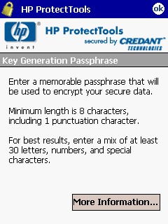 При выборе биометрической защиты в качестве одного из средств безопасности потребуется пройти курс обучения, как самой системы, так и пользователя. От последнего требуется проводить пальцем над сканирующей линейкой таким образом, чтобы КПК получал пригодный для идентификации отпечаток. В общем, это несложно, автору этих строк удалось научиться пользоваться системой буквально со второй-третьей попытки. Система распознавания работает довольно надежно, она не предъявляет чересчур высоких требований к точности движений – обычно более-менее равномерного и прямолинейного прохода пальца достаточно для получения отпечатка, пригодного для распознавания. Нужно стремиться начинать движение не самим кончиком пальца, а от первой фаланги, в таком случае HP ProtectTools захватит наиболее пригодный для распознавания и сравнения отпечаток середины подушечки.