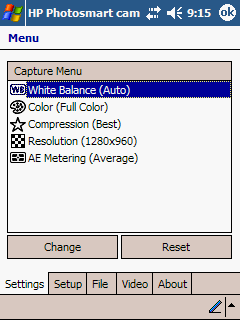 HP Photosmart – фирменное для HP название, под которым скрывается функция фотосъемки. Эта программа позволяет фотографировать с помощью встроенной камеры, кадры могут получаться размером 160х120, 320х240, 640х480 и 1280х960 точек. Дополнительно можно настраивать баланс белого (авто, дневной свет, лампа накаливания, лампа дневного света), цветной (полный цвет, монохром, сепия, негатив, оттенки голубого), уровень JPEG-компрессии (3 градации), и режим автоэкспозиции (точечный замер в центре кадра, или же средний по площади). Дальнейшие настройки касаются звука затвора, режима задержки кадра для просмотра и таймерной съемки. Камера позволяет записывать озвученное видео в разрешении 128х96 или 176х144 точки со сжатием H.263 или M-JPEG. Предусмотрен также цифровой зум 4х.