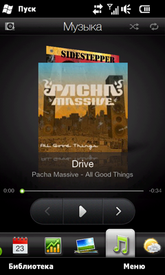 Встроенный плеер с незамысловатым названием Музыка поддерживает немало форматов: .aac, .amr, .m4a, .mid, .mp3, .mp4, .qcp, .wav, .wma. Однако любимые многими lossless-форматы (flac или ape) требуют установки стороннего ПО. Например, CorePlayer, в девичестве TCPMP (The Core Pocket Media Player). Покупать коммерческую версию не обязательно, старый TCPMP 0.72RC1 с плагином flac справляется превосходно.