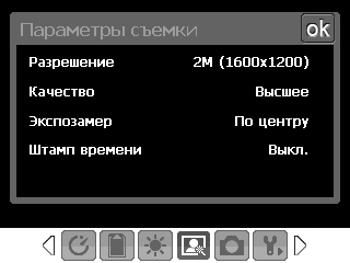 На главном экране утилиты управления фотокамерой находятся следующие настройки: разрешение снимка, зум, экспокоррекция (уровень яркости) и баланс белого, а также таймер задержки съемки.