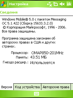 - Операционная система Windows Mobile 5.0, комплект обновлений AKU 3.2