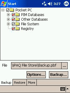Стандартные утилиты Windows Mobile 2003 дополняются несколькими фирменными инструментальными средствами от Hewlett-Packard. Это программа просмотра изображений iPAQ Image Viewer (напомним, что в стандартной комплектации как Pocket PC 2003, так и Windows Mobile 2003 отсутствует утилита для просмотра JPEG: эту функцию выполняет Pocket Internet Explorer). Она позволяет просматривать папки с изображениями в виде thumbnails (уменьшенных копий), открывать сами изображения в полноэкранном режиме, масштабировать их, поворачивать, просматривать свойства изображения и организовывать слайд-шоу. Следующая утилита это iPAQ Backup, позволяющая архивировать важные данные (базы данных органайзера, другие базы, системный реестр и т.д.) во встроенную или внешнюю флэш-память.