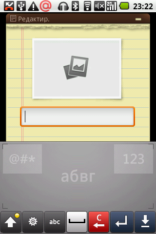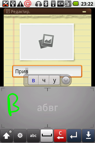 Разработчики коммуникатора предусмотрели замену штатной клавиатуре операционной системы. В целом сторонний аналог более удобен для набора текста, если бы не одно но, о котором ниже. Удобней всего печатать в горизонтальном положении, жаль, что не во всех случаях переключение экрана возможно. Помимо традиционной QWERTY-раскладки можно набирать текст в телефонной раскладке или при помощи рукописного ввода. В последнем случае буквы рисуются на экране и распознаются по одной.