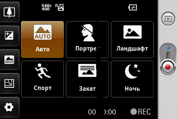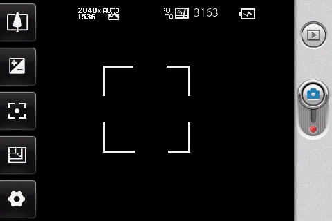 Если нажать на экран коммуникатора во время работы программы управления камерой, на нем появятся несколько иконок с настройками: цифровой зум, коррекция экспозиции, вид съемки, разрешение снимка, а также открытие окна с дополнительными настройками. Максимальное разрешение фотографий 2048×1536 пикселей, видеороликов 640×480 пикселей. Формат видеозаписи MPEG4, длительность роликов не ограничена.