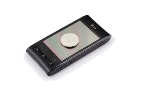 Верхний торец коммуникатора используется для размещения 3,5 мм разъема для наушников. Снизу у LG Optimus находится только микрофон.