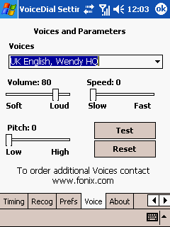 Голосовой набор в коммуникаторе реализован посредством программного пакета Fonix Voice Apps. Именно эта программа вызывается кратковременным нажатием на клавишу диктофона. В MDA Compact разработчики попытались организовать универсальную систему голосового набора, позволяющую работать с расширенной адресной книгой (то есть, с учетом того, что на каждого абонента может быть записано несколько номеров) и осуществлять вызовы по номерам, которые в памяти коммуникатора вообще отсутствуют, вводя их по цифрам. Работа программы построена по пошаговому принципу, это своего рода «мастер голосового набора», при этом на каждом шагу можно получать голосовые подсказки, что позволяет взаимодействовать с программой вслепую – это важно, например, при использовании гарнитуры hands-free.