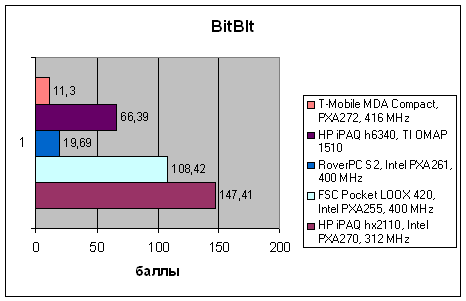 Мы сравнили результаты тестирования T-Mobile MDA Compact с помощью пакета VOBenchmark с аналогичными достижениями других распространенных коммуникаторов на Pocket PC. Для сравнения мы указали также показатели КПК среднего класса, по характеристикам наиболее близкие к коммуникаторам.