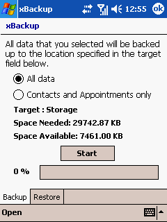 xBackup – программа для резервного копирования важных данных в энергонезависимую память. Подобными программами комплектуют свои КПК и коммуникаторы практически все производители. В данном случае можно резервировать как все данные, так и выборочно – контакты и расписание.