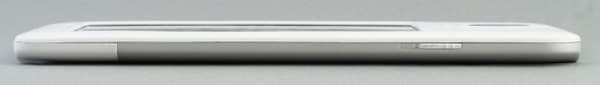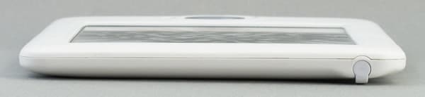 На нижнем торце находятся остальные органы управления. Это качелька регулировки громкости и кнопка включения/выключения. Последняя также вызывает некоторое неудобство — во всяком случае, когда книга в чехле. Нажимается эта кнопка туговато, и если чехол не придерживать, книга стремится вылезти из него.