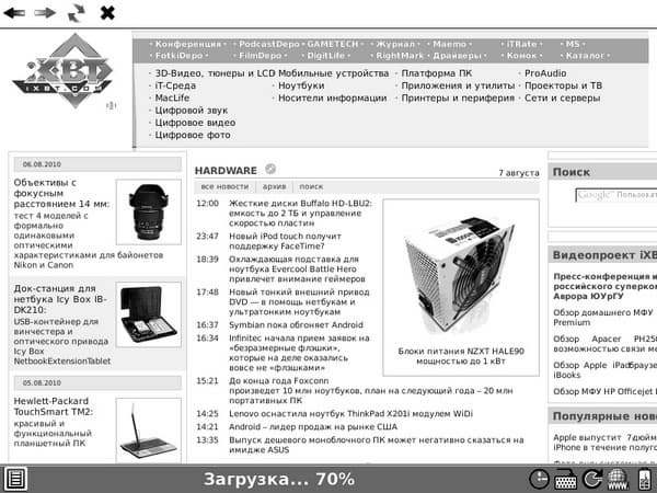 Необходимость прокрутки, не очень быстрая работа браузера по прорисовке страницы, особенности экрана и прочие вышеназванные многочисленные минусы браузера и клавиатуры — все это не лучшим образом сказывается на удобстве. А уж если учесть повышение стоимости устройства из-за такого «прибамбаса» — то вообще полезность его присутствия в книге можно поставить под сомнение. Плюс Wi-Fi «жрет» батарею с большим аппетитом. Пара-тройка часов — и батарейка пустая.