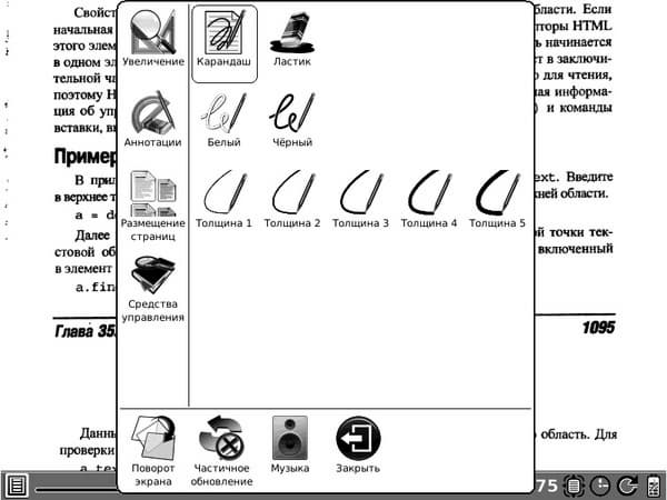 Обновление экрана настраиваемо. Оно может быть частичным или полным. Обновить можно и вручную — для этого внизу всегда есть небольшая пиктограмма. Правда, придется для этого доставать стилус.