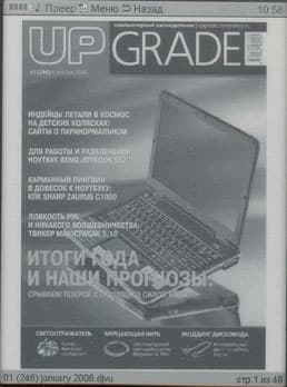 Последний является наиболее интересной особенностью устройства — применен экран на базе электронных чернил с диагональю 16 сантиметров и разрешением 600 х 800 точек, что сравнимо с листом бумаги формата А6. Поскольку в последнем случае приходится еще и делать поля, а здесь мы можем заполнять экран целиком, можно говорить даже о полной идентичности. Качество отображения информации проще всего оценить по сканам экрана (в отличие от активных ЖК-дисплеев, экраны на базе электронных чернил без каких-либо проблем «снимаются» обычным бытовым сканером — все как и в случае с бумагой обычной). Несложно заметить, что контрастность изображения ниже, чем в случае качественных распечаток или современных ЖК-дисплеев: фактически вместо белого цвета мы имеем лишь серый. Увы, но таковы сегодняшние ограничения технологии, о чем я уже говорил выше: это, скорее, уровень газетной полиграфии, а не высококачественной печати. Да и с цветом тоже самое — хотя уже есть образцы цветных дисплеев на базе электронных чернил, но и там цветов не так много, а массовые устройства довольствуются выводом лишь полутонового изображения.