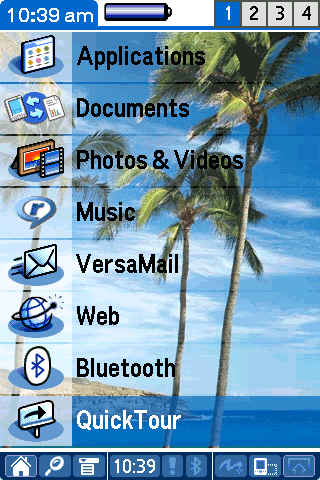 palmOne продолжила традицию перетасовывать назначение аппаратных кнопок быстрого вызова. В модели T5 они имеют следующее применение (слева направо): вызов/переключение между видами Favorites/Application launcher, Календарь, Контакты, Менеджер Файлов. Функциональность последнего очень ограничена, он позволяет просматривать файлы только на встроенном диске и карте расширения. Для работы с основной памятью приходится использовать сторонние утилиты.