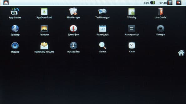 За кнопкой Programs прячется объемный сборник установленных на планшете программ. Здесь найдется AppCenter (аналог Android Market), iFileManager (браузер файлов), Task Manager (своеобразный диспетчер задач), TP Utility (настройка сенсорной панели), Диктофон, Календарь, Калькулятор, Камера, Поиск, Часы. Вот и весь список необходимого, на взгляд разработчиков, ПО. В принципе, список достаточный для множества пользовательских задач, единственный вопрос, который возникает при ознакомлении с ним: «Чем же помешали штатные приложения Android?» — такие как Gtalk и Gmail.