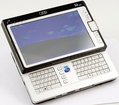 А что с этим можно сделать? Например, уменьшить диагональ дисплея. Автоматически устройство подешевеет и «усохнет» по габаритам. Уже хорошо, но пока еще мало. А если убрать «полноценную» клавиатуру и координатное устройство управления курсором? Первую — вообще или заменив на что-нибудь типичное для КПК и коммуникаторов. Второе — переделав под удобство управления «на весу» (т.е. чтобы с устройством относительно полноценно можно было работать просто держа его двумя руками). Опять же — подобные мероприятия гарантировано снизят размеры и массу устройства, так что тут и сенсорный дисплей окажется более полезным, чем для тяжелого планшета — компьютер можно будет держать одной рукой, орудуя стилусом при помощи второй. В общем, получается нечто промежуточное между планшетным компьютером и КПК/коммуникатором. От первого — «стандартная» аппаратная база, от второго — возможность пользоваться в походных условиях. Прочие параметры — ровно посередине. В общем, то, что мы с вами сейчас представили себе умозрительно, некоторое время назад появилось на практике, и называется оно «ультрамобильным компьютером» или (по английской аббревиатуре) UMPC.