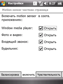 Еще одной модной современной тенденцией является использование в коммуникаторах и смартфонах датчиков движения. Опять же — сам по себе датчик вещь дешевая, но без хорошей программной поддержки практически бесполезная. Зато при ее наличии очень удобная. К сожалению, не в этом случае — фактически мы можем использовать датчик только для поворота при просмотре фото и видео, «перетряхивать» музыку при прослушивании музыки, а также допустимо «стряхнуть» нежелательный входящий звонок или звенящий будильник. И еще есть в комплекте игрушка Marble, в которой необходимо провести шарик по лабиринту, датчик движения использующий. На этом — все. Дальше если что и получится, то только самостоятельно.
