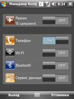 Как уже стало (не)доброй традицией для бюджетных коммуникаторов, за исключением замены стандартному апплету Wireless Manager у G7 отсутствуют дополнительные утилиты для работы с беспроводными интерфейсами. Менеджер симпатичный, одно из немногих приложений с управлением пальцами, но и только то — вся непосредственная работы выполняется уже привычными средствами операционной системы. У чего есть и хорошие стороны — зато все они давно уже отлажены, так что, по крайней мере, работают, не пытаясь поразить пользователя странностями поведения.