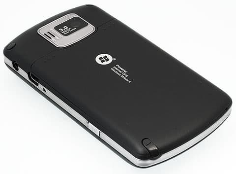 Обратная сторона коммуникатора используется для размещения главной фотокамеры и основного динамика компьютера. Основная площадь задней панели занята аккумуляторным отсеком. Сверху расположена кнопка включения питания, по совместительству также являющаяся и кнопкой его выключения (что стало модным — раньше вот как-то обходились и без выключения коммуникаторов :)) при длительном нажатии или перехода «в спячку» при коротком.