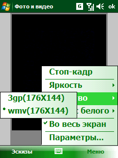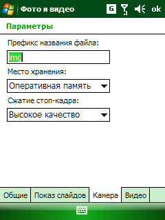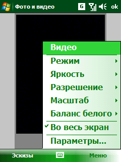 Включение камеры, равно как и получение снимка или старт видеозаписи, осуществляется с помощью отдельной аппаратной клавиши на правой грани корпуса. Интерфейс программы управления лаконичен и удобен. Регулируются: яркость снимка, разрешение (максимальное 1600х1200 пикселей), программный зум, баланс белого. Для видеоролика можно указать ограничение по длительности, а также формат видео: 3GP или WMV. В любом случае разрешение составляет 176х144 пикселя.