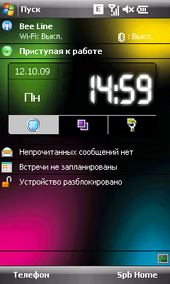 В отличие от RoverPC C7, герой этого обзора оснащен большим количеством дополнительного программного обеспечения. Из того немногого, что есть и в C7 и в X8 программа SmartToday. Но большинство владельцев Х8 её не увидят, так же, как не увидят и самого экрана Today. Поверх него по умолчанию работает программа Spb Mobile Shell. Разработанное компанией Spb Software приложение предназначено для облегчения управления коммуникатором с помощью пальцев. Программа выводит множество элементов управления и информации на нескольких вкладках-экранах, перелистываемых пассами пальцев. На вкладках можно увидеть часы, прогноз погоды, заметки и контакты. Во многом элементы дублируют друг друга, например списков контактов три штуки, так же, как списков недавних вызовов. Spb Home популярное приложение для Windows Mobile, его можно встретить во многих устройствах. Зачастую его устанавливают сами производители, так же, как и в RoverPC X8, желая облегчить пользователям взаимодействие с устаревшим и запутанным интерфейсом Windows Mobile. Благодаря мощному процессору программа работает очень быстро, никаких задержек в переключении между экранами нет.