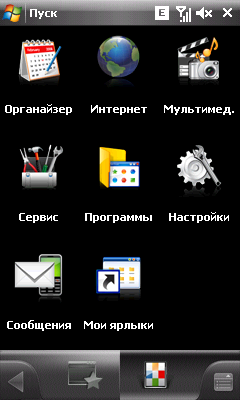 На лицевой стороне коммуникатора, помимо упомянутой узкой центральной клавиши, слева и справа расположены кнопки начала и окончания вызова. Всего три клавиши. Жаль. Были бы не лишними кнопка, отвечающая за закрытие текущего окна, и клавиша вызова меню «Пуск». Но их нет. Конечно, можно прицельно тыкать в соответствующие области сенсорного экрана. Но во многих ситуациях до необходимых пунктов меню хочется добраться очень быстро. А если учесть тряску в общественном транспорте или автомобиле, можно представить, насколько упрощают жизнь крупные аппаратные клавиши.
