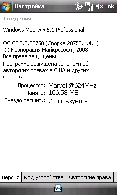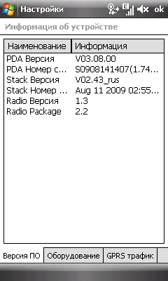 - Операционная система Windows Mobile 6.1 Professional, сборка 20758.1.4.1. Версия внутреннего ПО V02.43_rus;