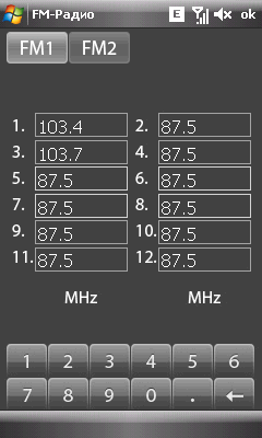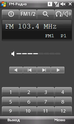 Программа управления радиоприемником выглядит перегруженной, интерфейс запутанным. Приложение позволяет регулировать громкость звука (штатные средства ОС на него не влияют), осуществлять быстрый поиск каналов, запоминать частоту 12 из них и быстро переключаться с помощью соответствующих кнопок. Кроме того, можно ввести заранее известную частоту канала.